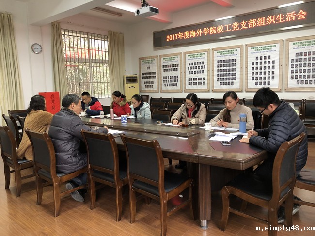 1月29日下午,2017年度海外学院教工党支部组织生活会在学院305会议室召开,深入开展批评与自我批评及民主评议党员,支部全体党员参会,两名处级党员领导干部以普通党员身份参加会议,党支部书记主持会议。