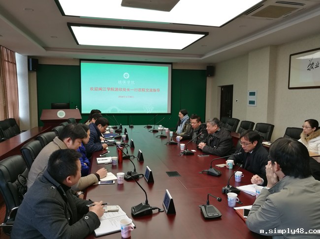 1月30日,闽江学院对外交流合作处处长游欣、教务处副处长王圣、外国语学院副院长陈曦蓉等一行7人来到我校植物保护学院交流国际化办学经验。我校教务处处长吴祖建、学院院长魏太云、党委书记余新然等在博学楼702会议室热情接待了来宾。双方就学院国际化办学情况展开了交流。学院党委副书记林平、副院长刘国坤以及学院英语教学团队成员、教学秘书等参与交流。