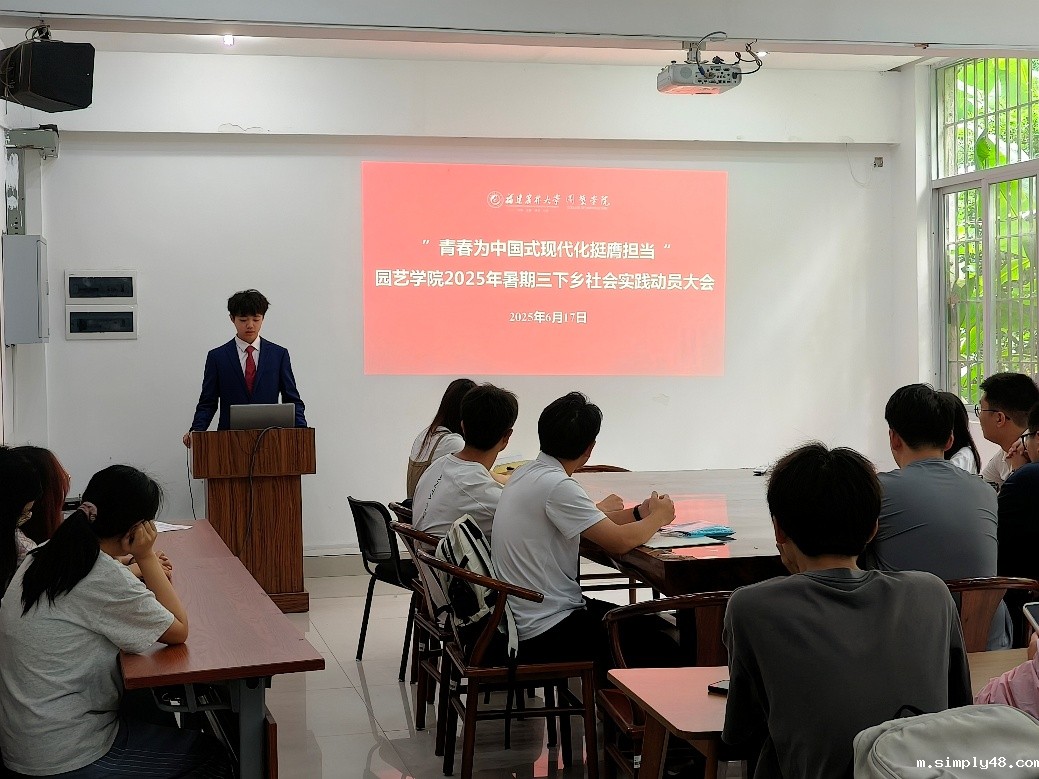 6月18日,园艺学院在园艺楼一楼会议室召开以“青春为中国式现代化挺膺担当”为主题的2025年暑期“三下乡”社会实践动员大会。会议由学院辅导员张冰柔主持,各年级学生代表60余人参加。