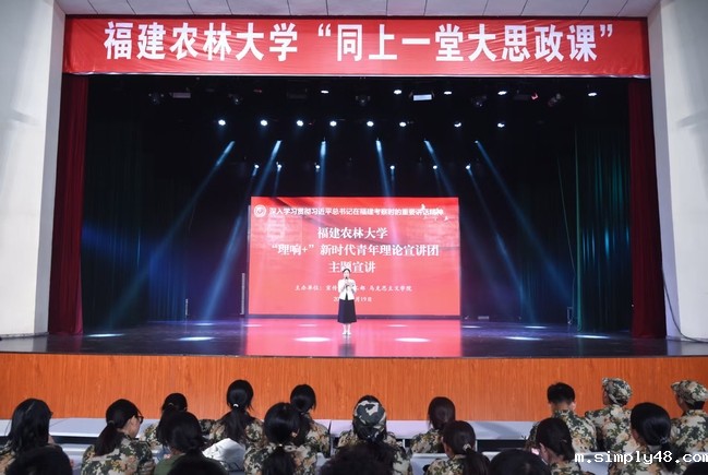 9月19日下午,校党委宣传部、学生工作部、武装部、马克思主义学院联合主办的“同上一堂大思政课”米兰国际体育俱乐部官网“理响+”新时代青年理论宣讲团主题宣讲报告会在我校福州仓山校区大礼堂成功举行。600余名2025级新生共同聆听了这场思想深刻、内容丰富的报告。报告会由公共管理与法学院宋羽副教授主持。