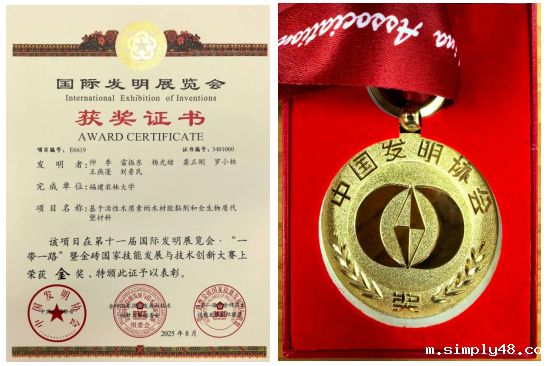 2025年8月24日,由中国发明协会主办的第十一届国际发明展览会·“一带一路”暨金砖国家技能发展与技术创新大赛在中国(广州)进出口商品交易会展馆落幕。本届展会汇聚了来自全球30多个国家和地区2000多项发明,集中展示了一大批具有国际领先水平的发明成果与技术解决方案,成为推动全球科技创新交流与合作的重要平台。经中国发明协会推荐,我校材料与工程学院帅李教授团队(帅李、杨光绪、龚正刚、罗小林)联合同济大学(雷振东)和山东百木生新材料科技股份有限公司(王燕蓬、刘鲁民)申报的“基于活性木质素的木材胶黏剂和全生物质代塑材料”成果,从众多国内外参赛者中脱颖而出,斩获金牌。