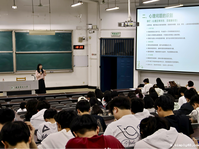 讲座伊始,周瑶瑶老师以生动的案例和幽默的语言,强调了大学生心理健康的重要性,指出心理健康问题在大学校园中的普遍性和隐蔽性,引发了同学们的强烈共鸣。随后,她从专业的角度出发,详细介绍了大学生常见的心理问题类型,如焦虑、抑郁、人际关系问题等,通过具体的事例和症状表现,帮助同学们准确识别这些心理问题。