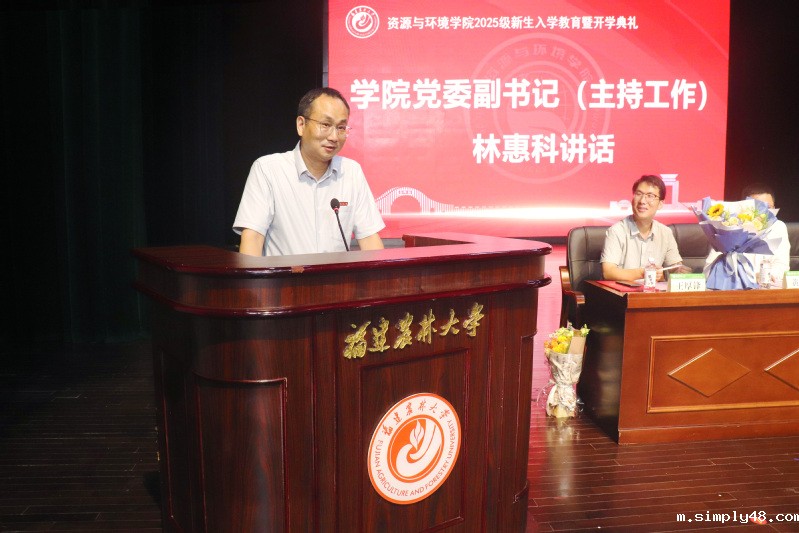 9月10日,资源与环境学院2025级新生入学教育暨开学典礼在仓山校区大学生活动中心隆重举行。学院党委副书记(主持工作)林惠科、院长蒋瑀霁、副院长张黎明、曹海雷出席典礼。校友代表、福建青年企业家协会执行会长、福建明坤控股有限公司董事长黄森坤受邀出席典礼。各系主任、新生班主任、教师代表、科级干部及全体新生参加典礼。典礼由曹海雷主持。