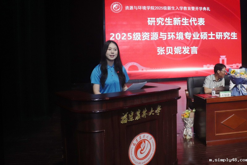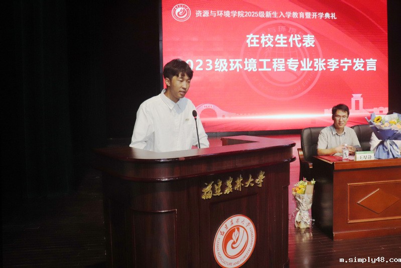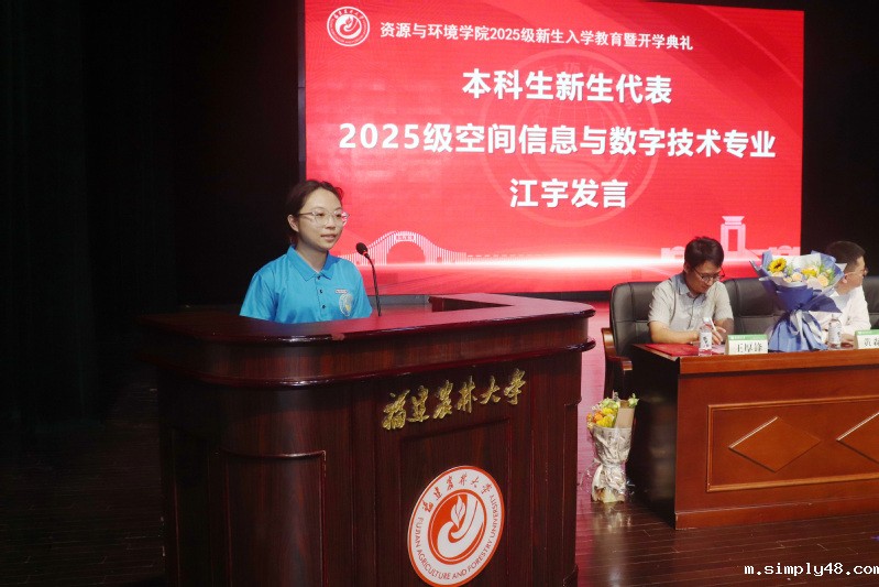校友代表黄森坤深情回顾了自己在农大的求学时光,将个人成长轨迹作为鲜活样本,以“规划、融合、视野”为关键词勉励新生,既要多探索、敢尝试,打破校内外与国内外的边界,也要在关注兴趣的同时审视内心,找到个人与时代的共振点,成长为有深度、有格局的资环学子。