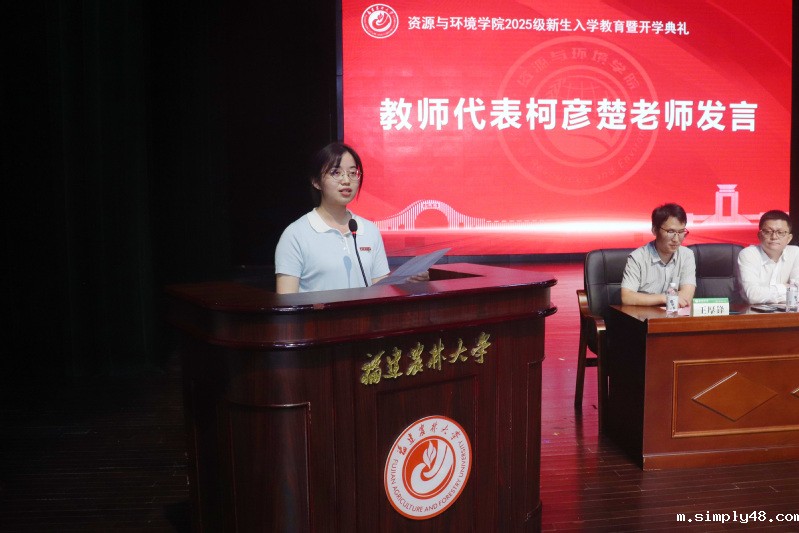 教师代表、毕业于北京大学柯彦楚,2023级环境工程专业张李宁、2025级资源与环境专业硕士研究生张贝妮、2025级空间信息与数字技术专业江宇分别做了发言,学院领导为新生班主任颁发聘书,新生代表为新生班主任献节日花束。