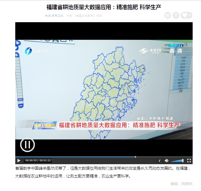立足我院在全省耕地质量监测长期积累科研实践成果之上,基于WebGIS及空间大数据技术、我院本科生在教师指导下参与开发了福建省土壤信息查询系统等数字农业、林业系列空间大数据应用系统取得了一系列知识成果,在福建东南卫视报道,产生积极社会效益。